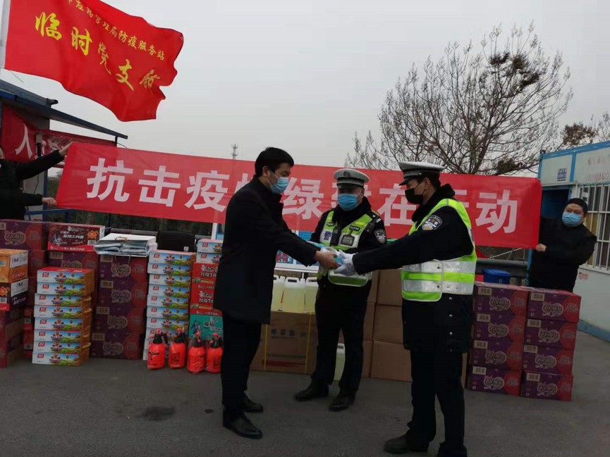 王建發董事長一行首先來到滎陽市高速收費站,慰問了執勤在高速收費站聯合執勤的干警同志們,并向他們捐贈了急需的防疫物資及生活物資??此麄儗γ恳惠v下站車輛每位人員進行詳細的詢問及檢查,王建發先生表示了崇高的敬意與衷心的感謝,滎陽市應急管理局副局長安良表示: “特別感謝綠建公司的雪中送炭,防疫物資緊缺使一線同志們面臨巨大的挑戰,有了這批物資,收費站的全體同志們必將以更加飽滿的精神和高昂的斗志,全力以赴投入到這場阻擊戰中,堅決守護廣大民眾健康”