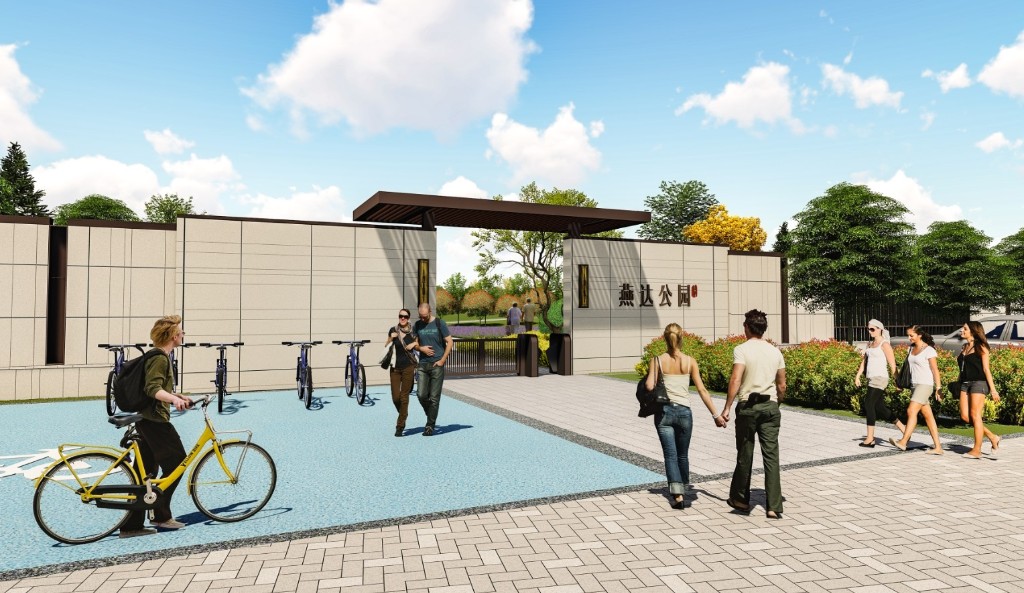 方案依據以人為本設計原則,將傳統文化與現代美學相結合, 采用藏、漏、擋、看等景觀設計手法,使“禮——探——聽——開—— 臨——合——趣——入”景觀脈絡貫穿整個方案設計,將公園劃分為入口景觀區、自然活動區、康體健身區、養生休閑區、水景觀賞區、 禪意空間、生態停車區七大空間。軒臺亭廊,水波連橋,屏風景墻、 枯山水景、石鼓地雕,花木景石等景觀小品穿插交融,增加新鮮活力,使景觀空間豐富多樣,層次分明,打造令人舒適、精致典雅的 生態公園景觀。