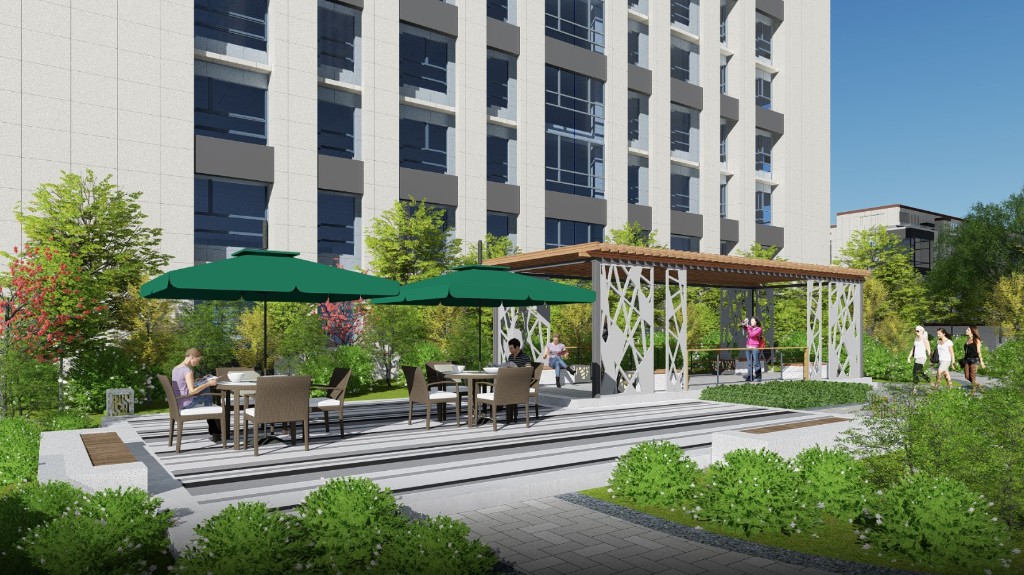 景觀理念:大隱于市:"東方美學,貴雅之境"。在喧鬧、動態的城市中,以形式上的隱,真正達到擇隱山水,物我兩忘的心境。在快節奏的狀態中體驗向往的仙境,讓人心馳神往。三重院落:第一重商業區、第二重商辦區、第三重庭院區。汲取老北京四合院式的三進院落融入設計語言,同時是對古典文脈的一種延續,體現其東方神韻。