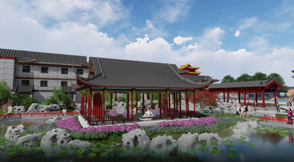 3、以入口服務區(龍之目)、明皇小鎮區(龍之心)、大明文化演藝區(龍之魂)、大明文化游覽區(龍之脈)、明皇文化社區(龍之居)六大功能分區布局整個文化園,將大明文化融入到每處景觀規劃中。