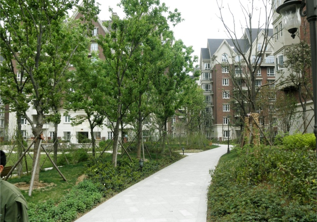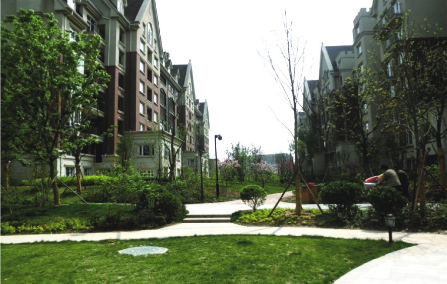 該小區建筑風格呈現加拿大風情,結合現代國際先進的設計理念,使景觀風貌與建筑和諧統一,植物景觀也較多引進加拿大適生樹種,以冷杉類植物和本地植物為主。