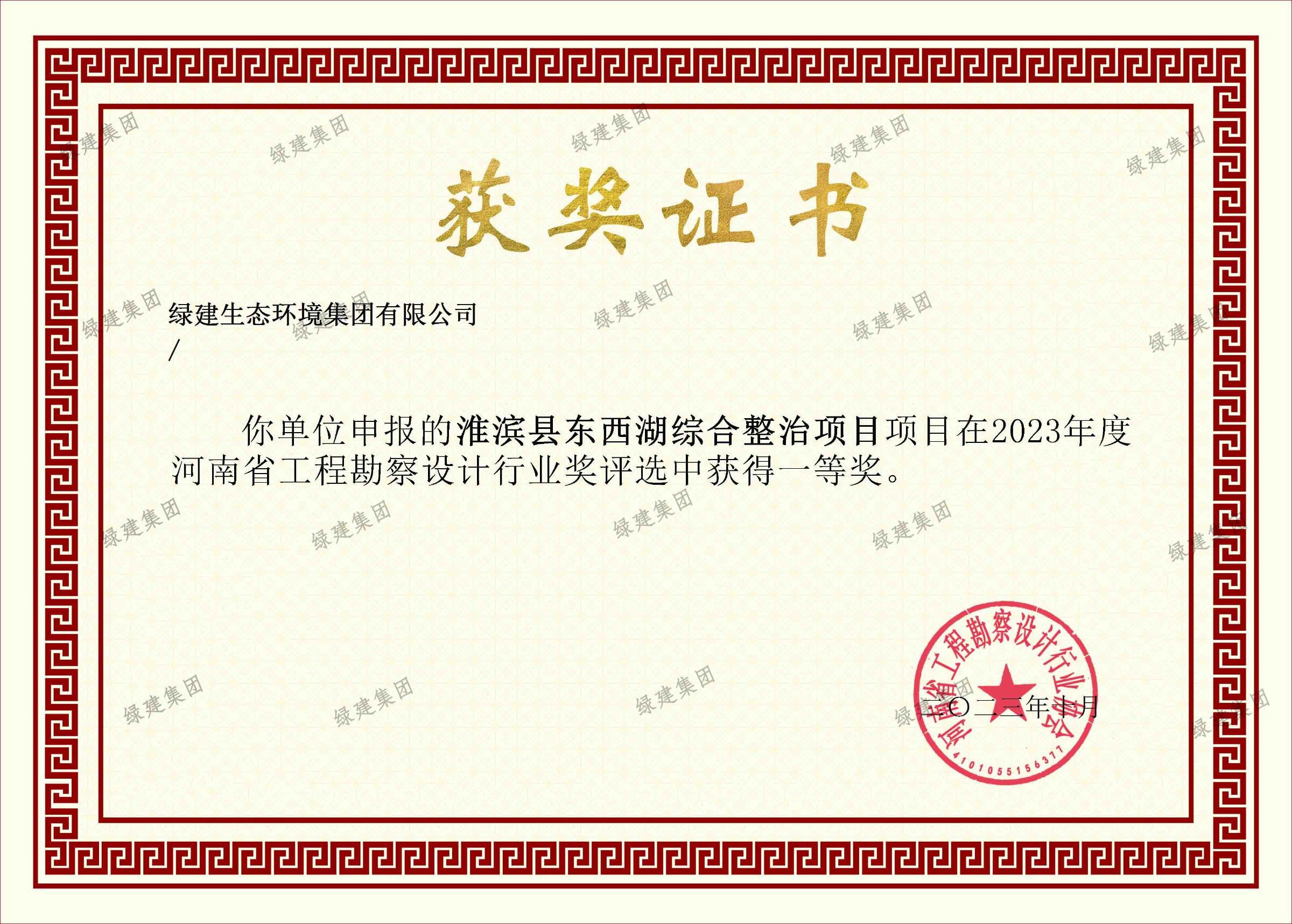 2023年度河南省工程勘察設計行業一等獎-淮濱縣東西湖綜合整治項目