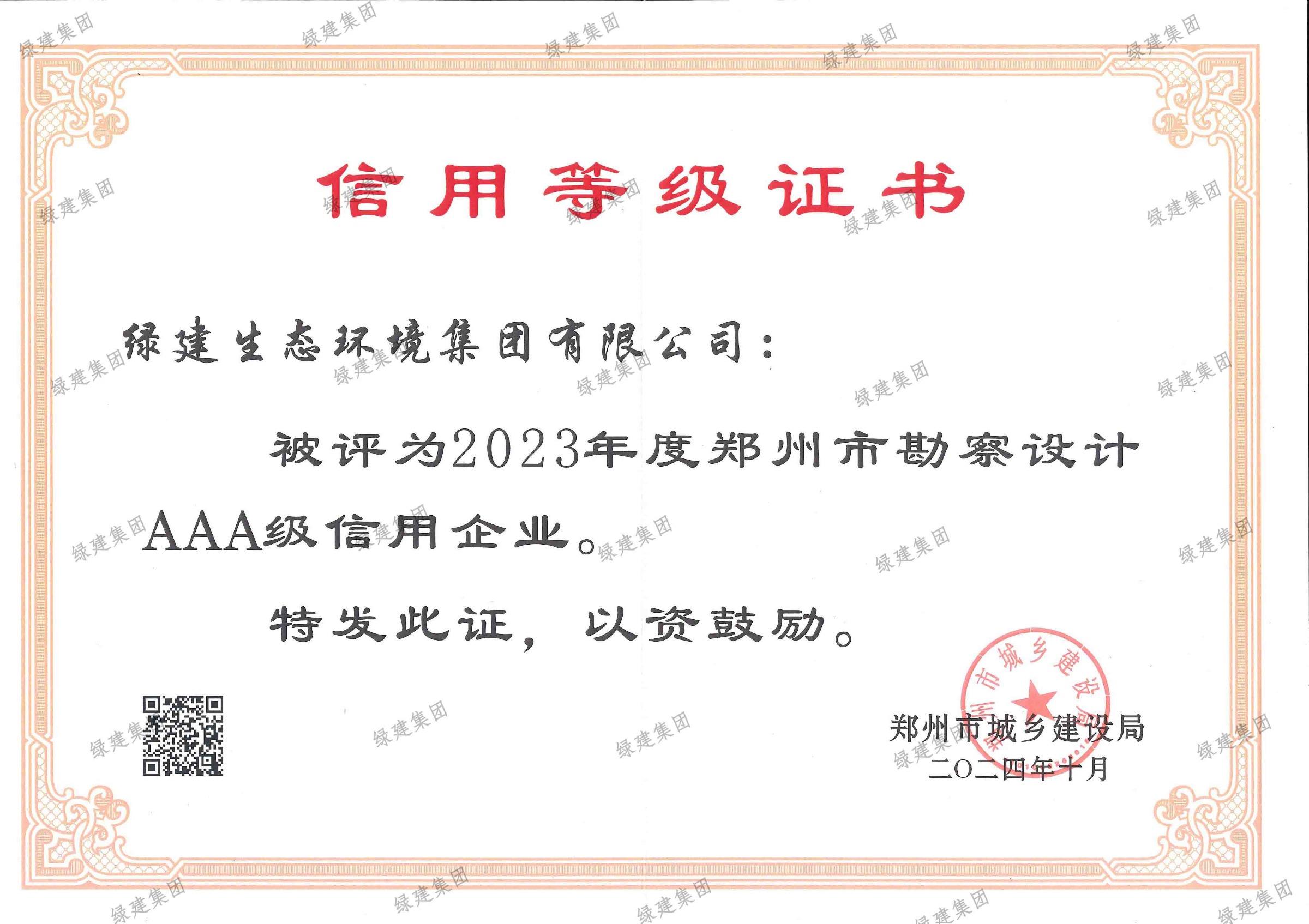 2023年度鄭州市勘察設計AAA級信用企業