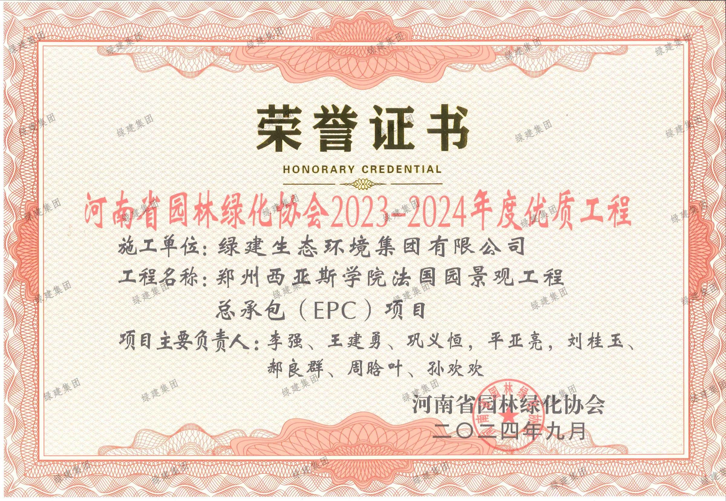 河南省園林綠化協(xié)會2023-2024年度優(yōu)質(zhì)工程獎