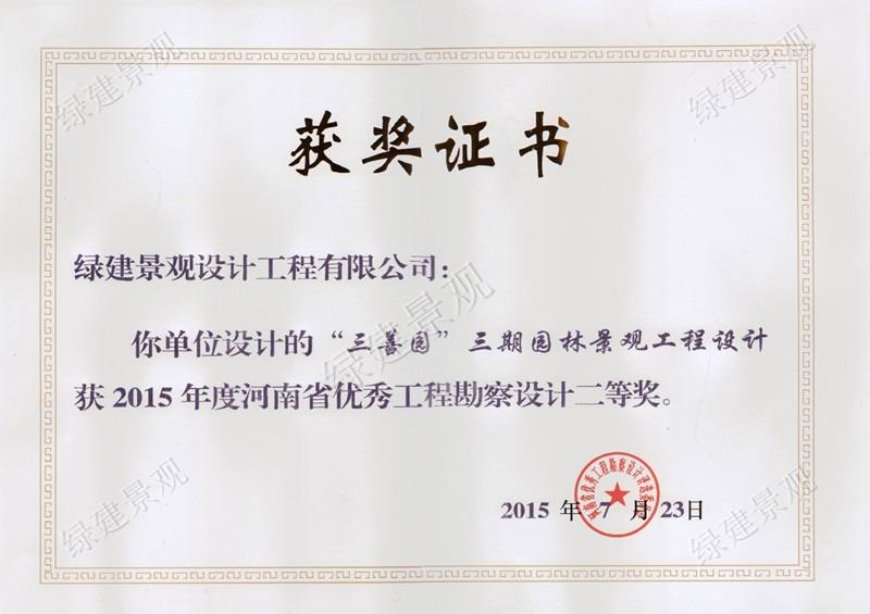 2015年河南省優秀工程勘察設計二等獎(三善園)