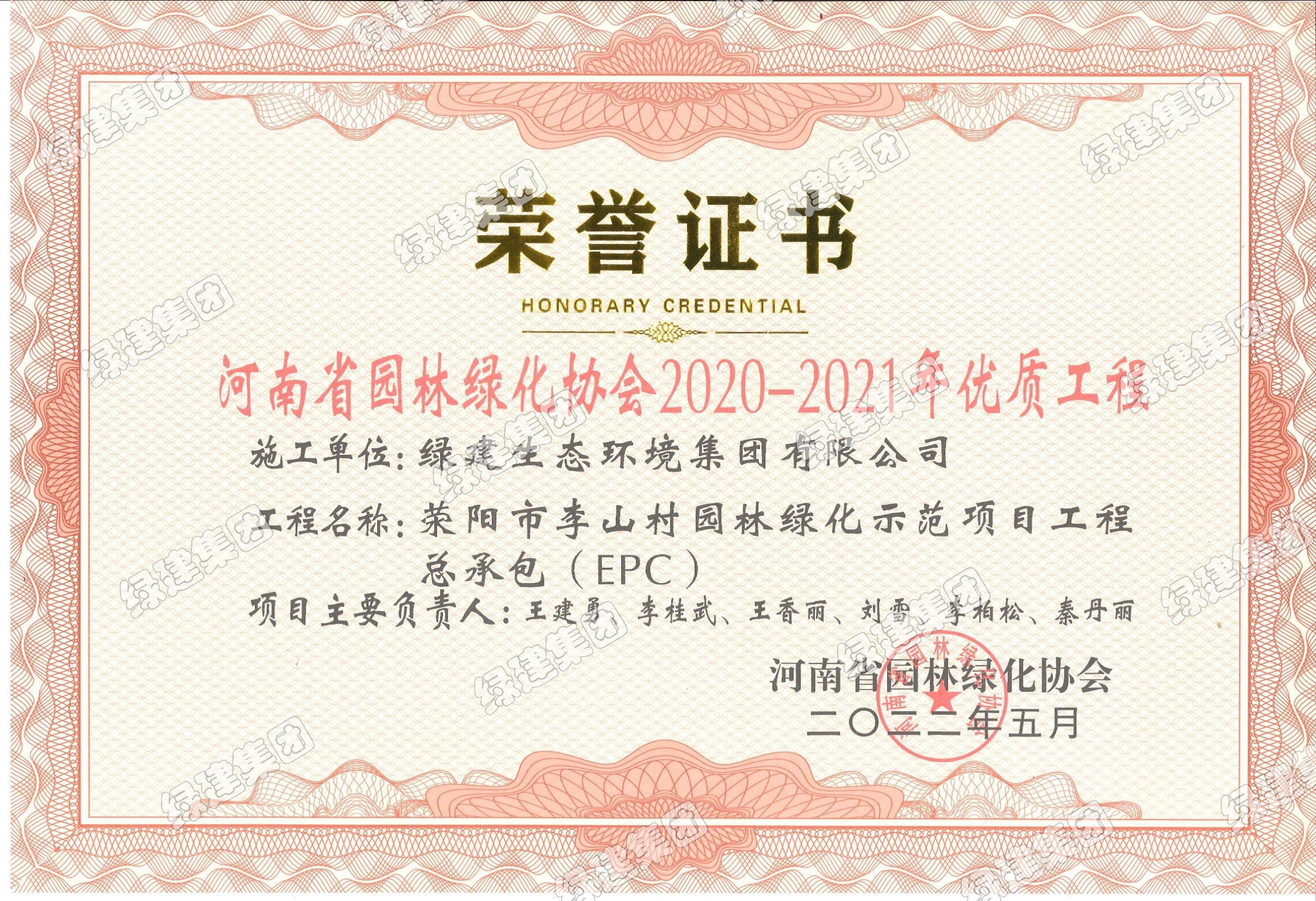 滎陽市李山村園林綠化示范項目工程總承包(EPC)——河南省園林綠化協(xié)會2020-2021年優(yōu)質工程