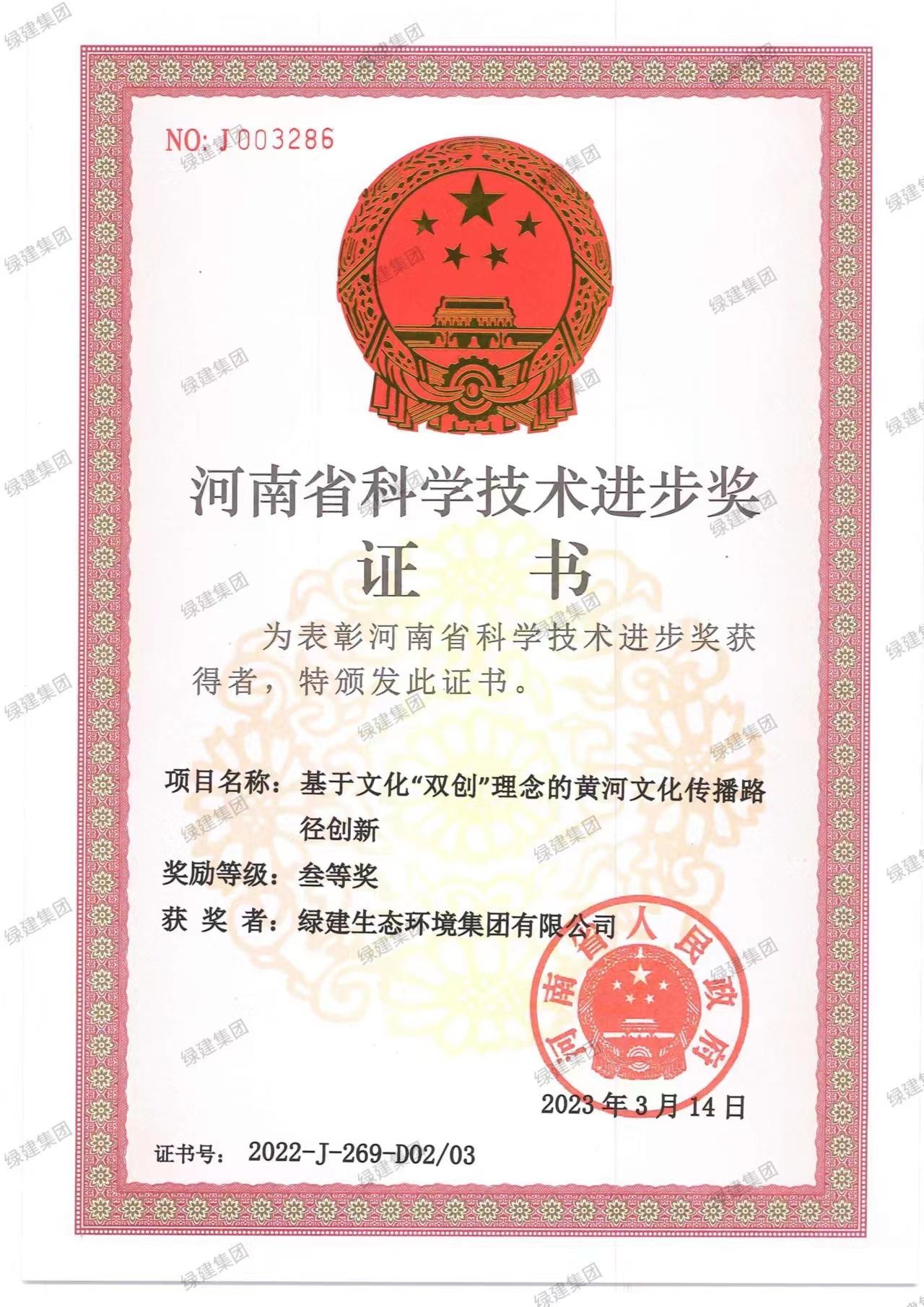 綠建生態河南省科技進步三等獎